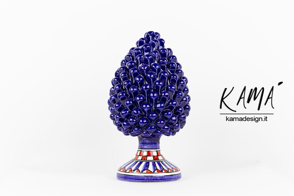 Si può abbinare una Pigna in ceramica di Caltagirone dell’azienda siciliana Kamà design, nei toni del blu cobalto o blu antico.