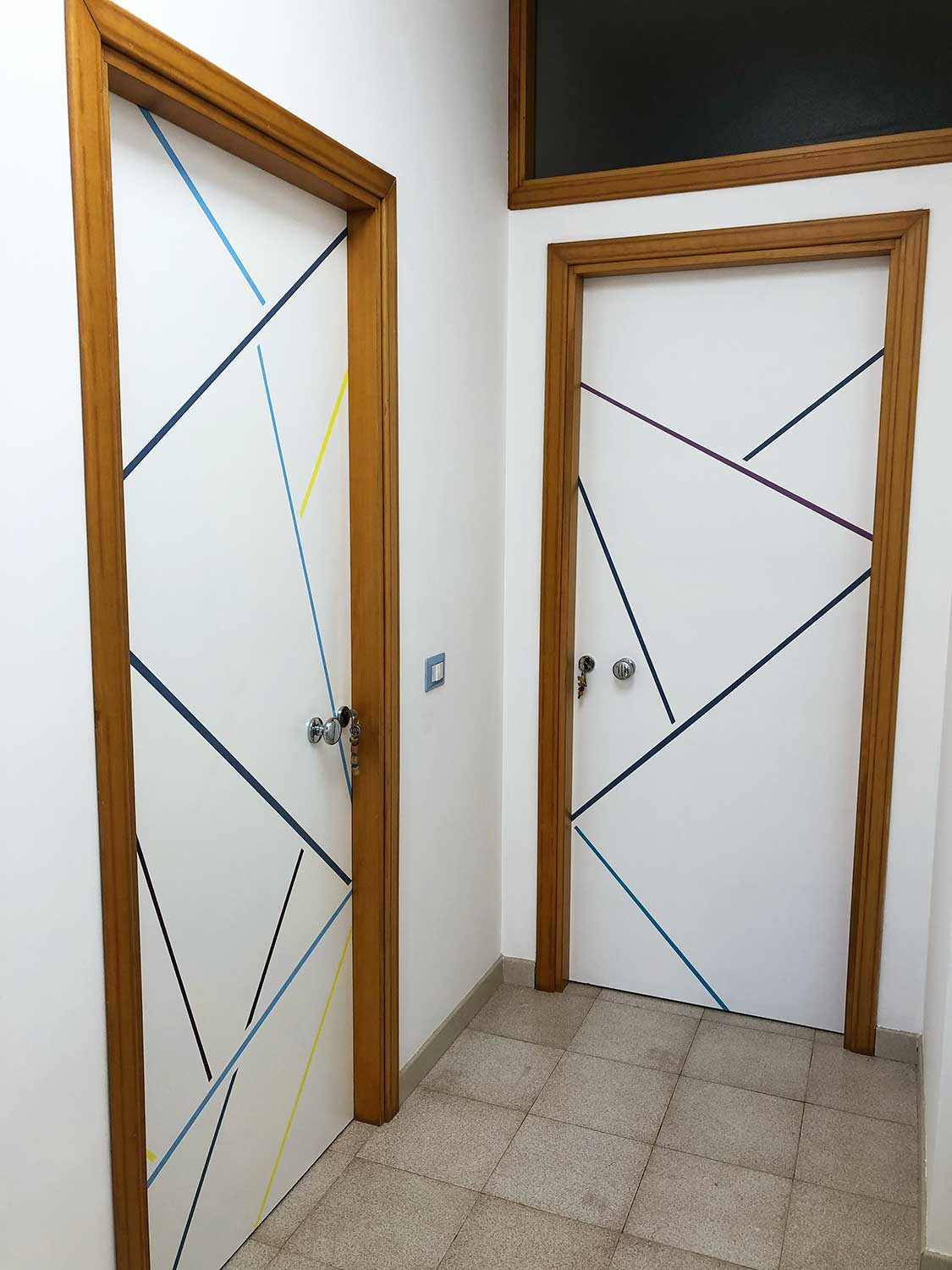 - Dopo aver passato le due mani di fondo accarezzare con il palmo della mano l’intera superficie della porta e accertarsi che non ci siano goccioline di colore a rilievo e pulviscoli.