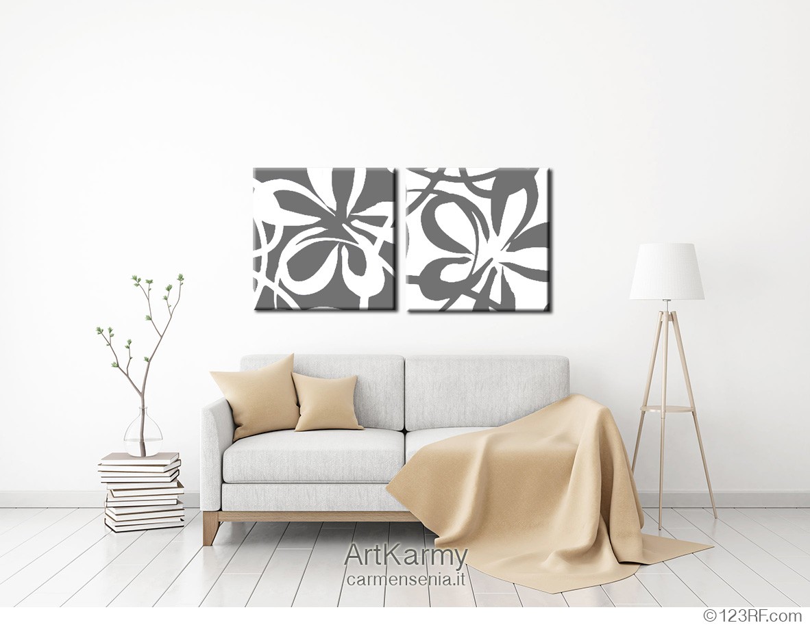 Coppia di dipinti natura stilizzata – Titolo : Fiori astratti Black and white