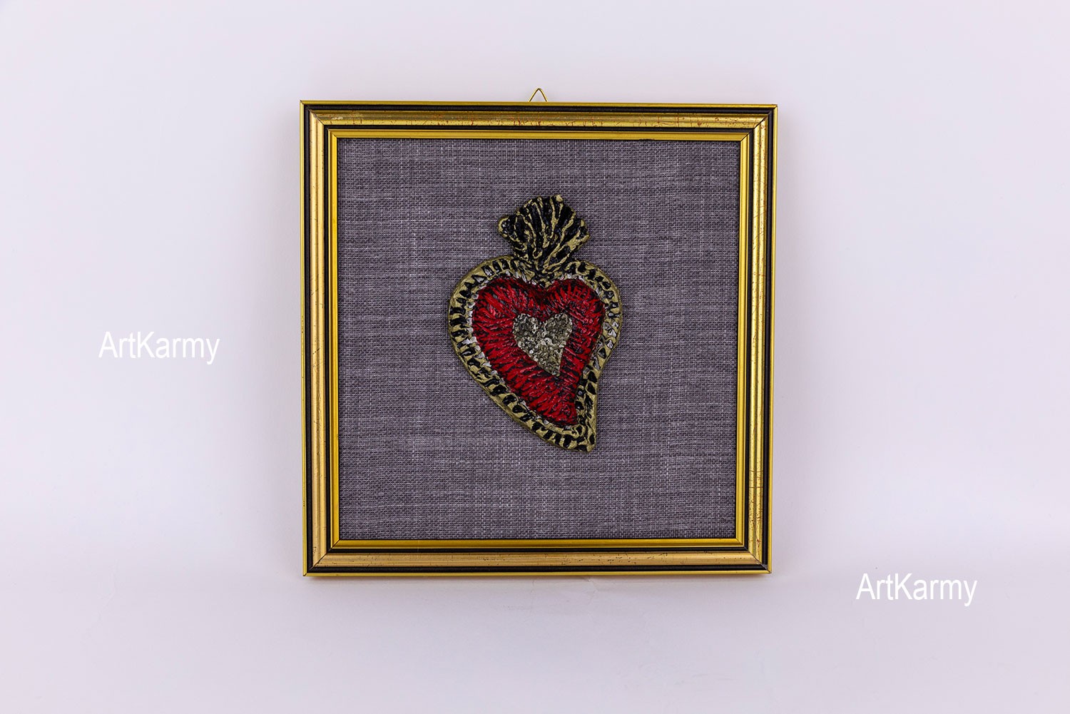 Cuore sacro realizzato in pasta polimerica e dipinto a mano.